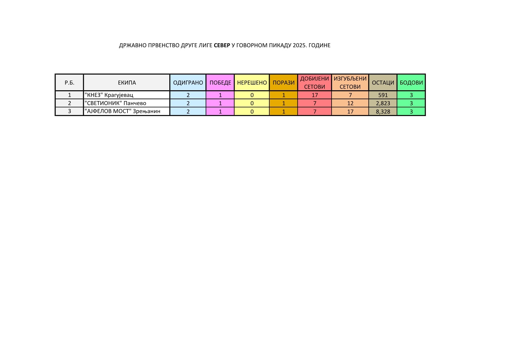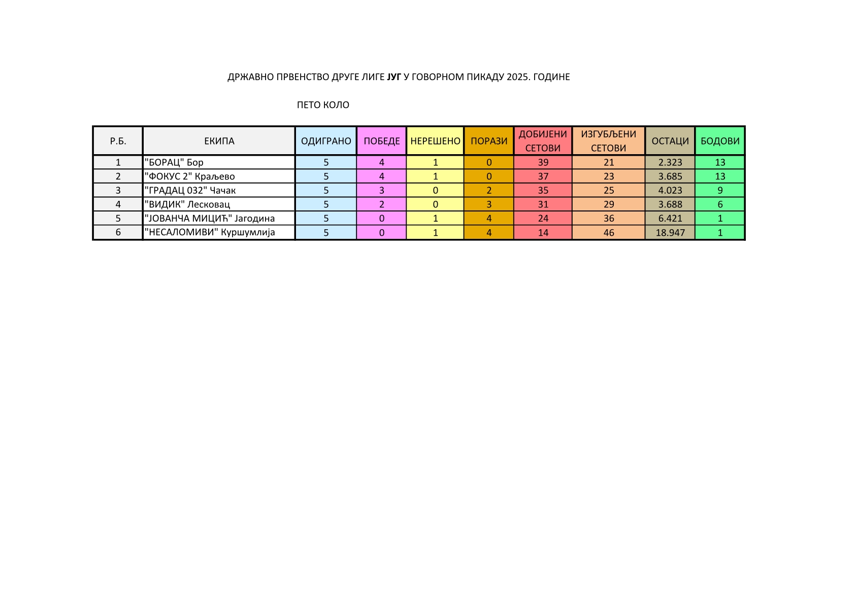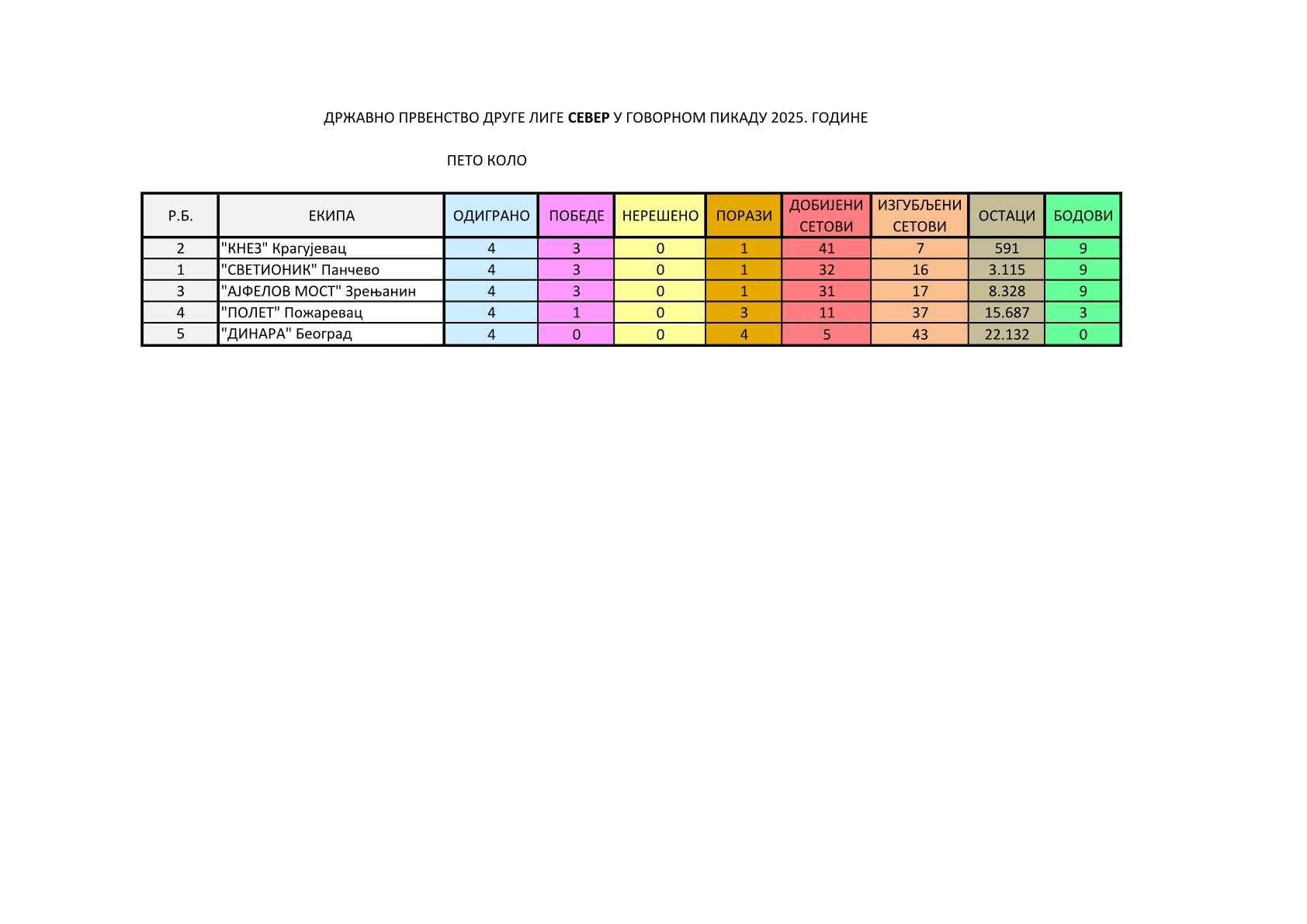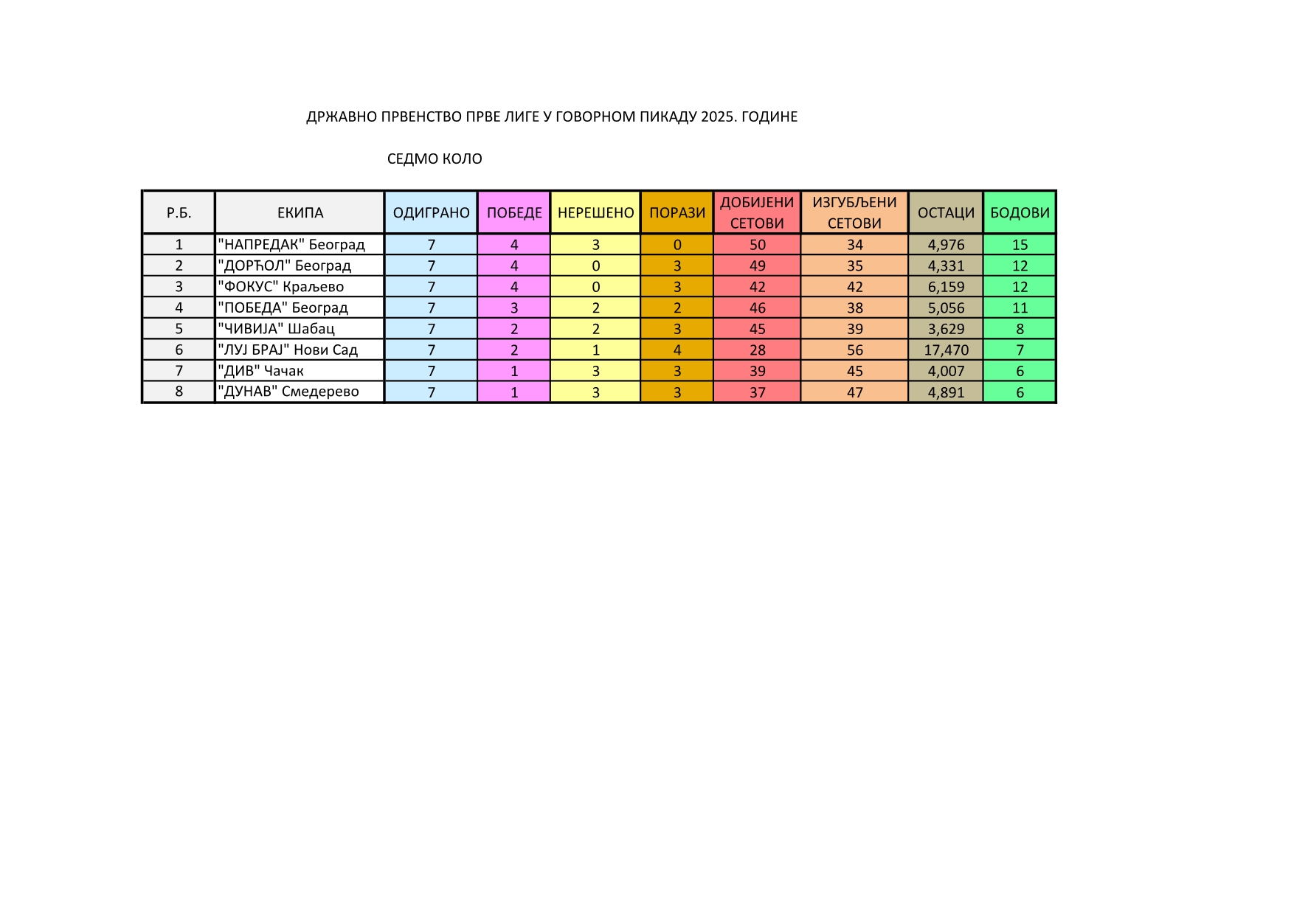 Табела 1. лиге у говорном пикаду за 2024. годину после 4. кола.